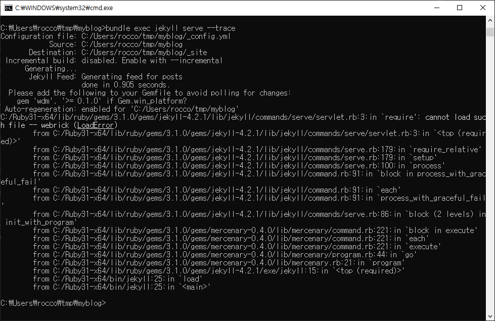 이번 포스트에서는 지킬 블로그가 실행되지 않는 이유와 해결방법을 정리한다.